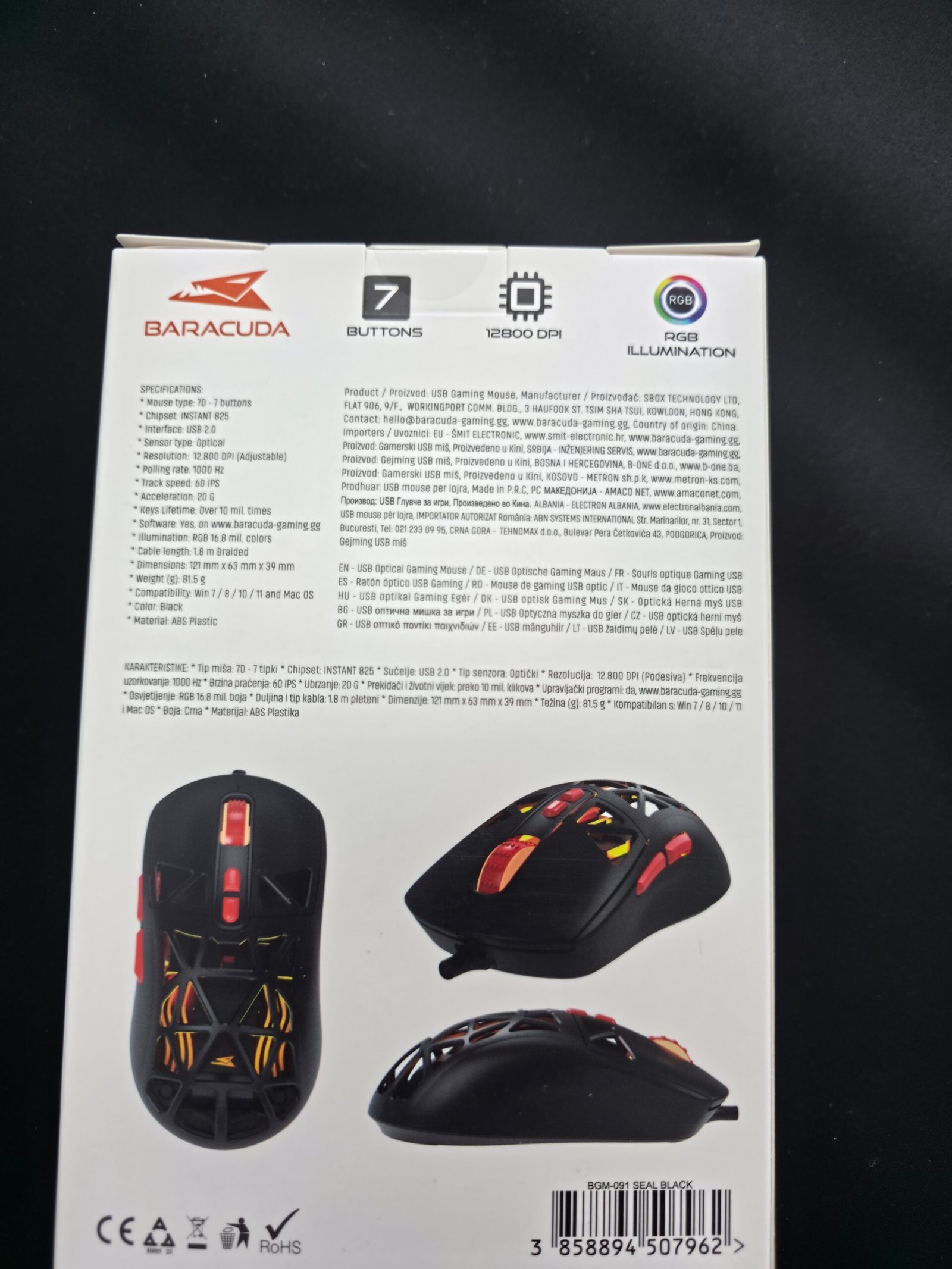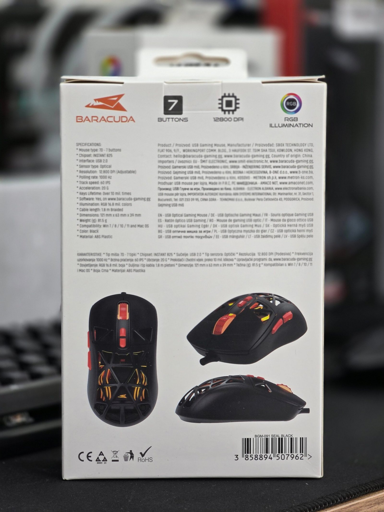 Për lojtarët që kërkojnë shpejtësi, kontroll dhe saktësi maksimale, Baracuda Seal është arma e duhur! Me dizajn të lehtë, ndriçim RGB dhe 7 butona funksionalë, ky maus e çon gameplay-in në nivel tjetër.