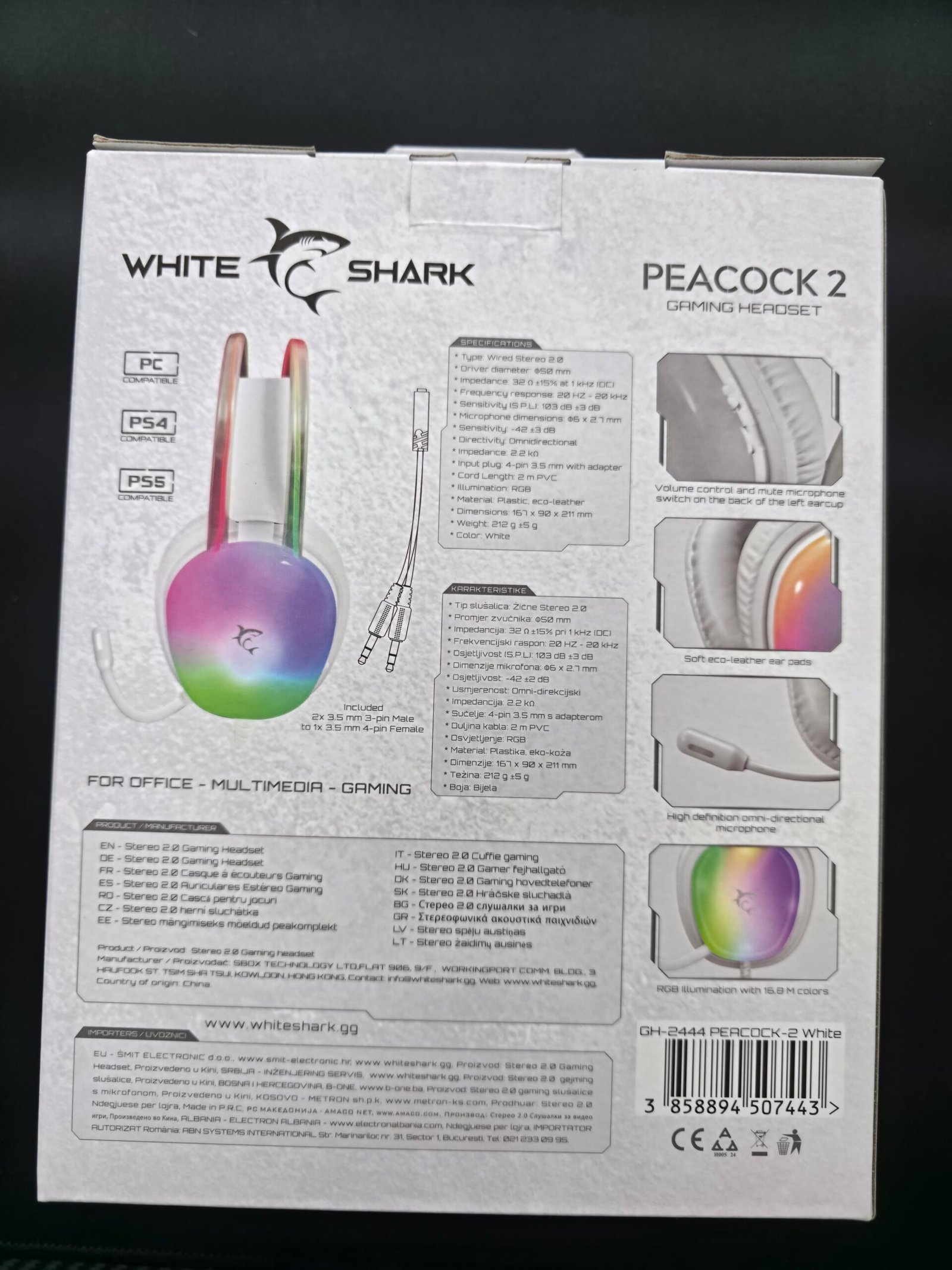 🎧 Kufje Gaming WhiteShark PEACOCK – komode, elegante dhe me ndriçim pastel RGB!